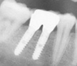 X-Ray picture of two dental implants inserted into the posterior mandible. A dental implant is an artificial tooth roo